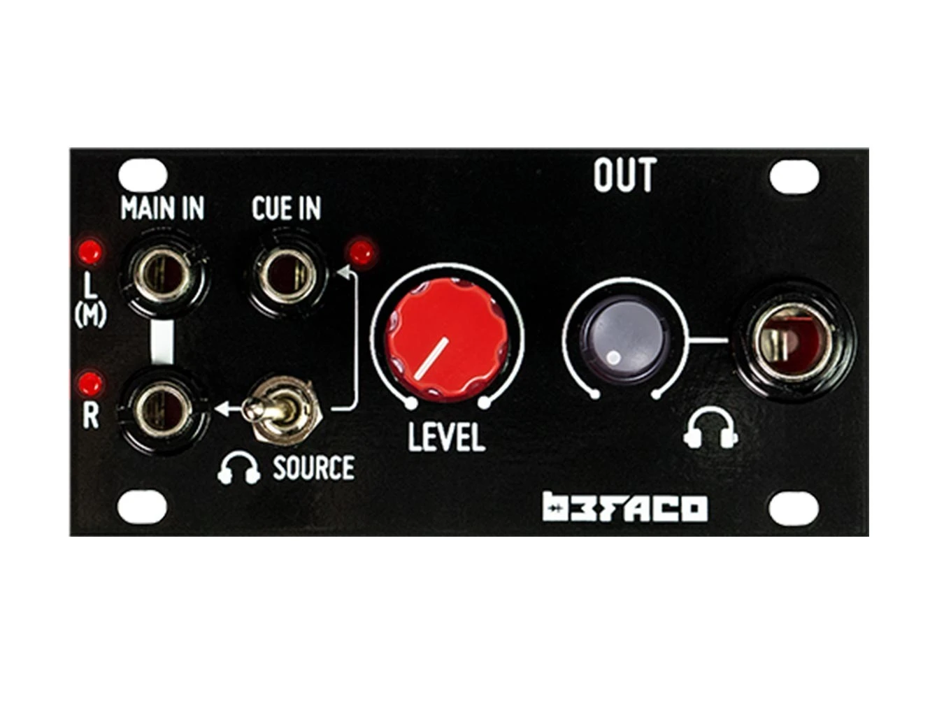 Befaco’s 1U Out is an Intellijel-sized 1U Eurorack module for connecting to the Intellijel Palette outputs and also includes a high quality headphone amplifier. Housed on a handsome black aluminum faceplate, this output is fully compatible with the built-in Palette outputs and includes a stereo audio input plus a Cue In. Via a switch, the Cue can go to the Mains or to the headphones making it perfect for live performances. Befaco makes wonderful utilities and the 1U Out is nothing if not a wonderful utility.