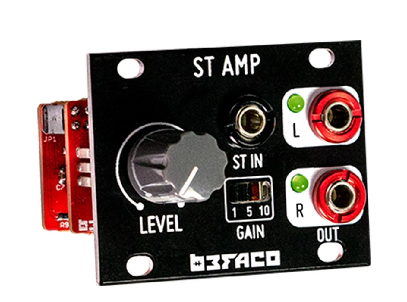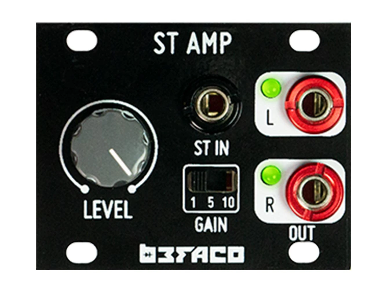 Befaco’s 1U STAmp is a 1U stereo amplifier module in Intellijel 1U format—great for adding to your Intellijel Palette, Befaco 7U case, or other compatible Eurorack cases. It features a front-panel stereo 3.5mm input with individual mono left and right outputs. It offers three gain range selections, and a continuous level control…making it easy to find the right amount of amplification for your system.