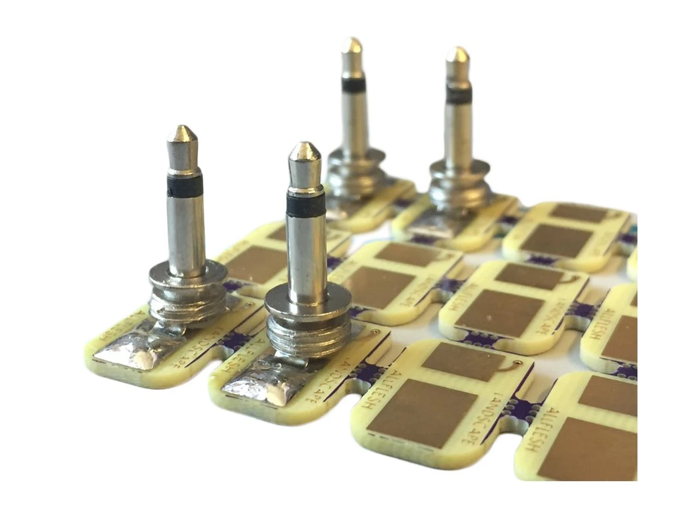With AllFlesh from Landscape, any set of patch points in your modular rig can become a performable, touch-controlled instrument. Plug in these AllFlesh jacks, and when touching both an input and an output, the signal will travel through the player’s body. This means one can quickly change patches by touching different pads, or change how “connected” the patch is by pressing with different pressures. Sequences can easily be sent to multiple oscillators, with the ability to switch back to drones at the lift of a finger. Or forego predictable outcomes entirely by setting up AllFlesh in a variety of feedback configurations—the sky is the limit! Explore new ways of interacting with your synthesizers with Landscape’s AllFlesh.