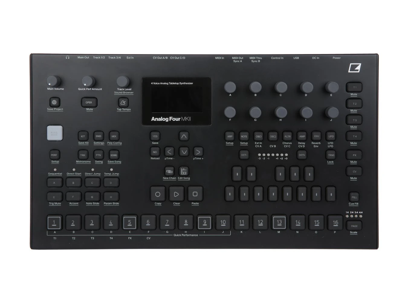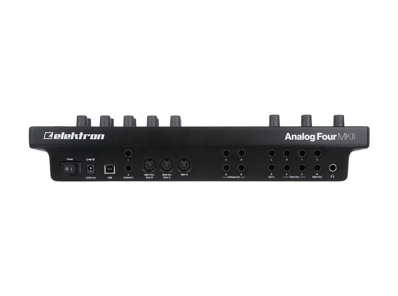 Compared to its original incarnation, the Analog Four mk2 features revised circuitry for some added bass depth and a distinct overdrive effect. Unlike the mk1, the second version features dedicated audio outputs for each voice, two CV inputs, and Overbridge functionality.