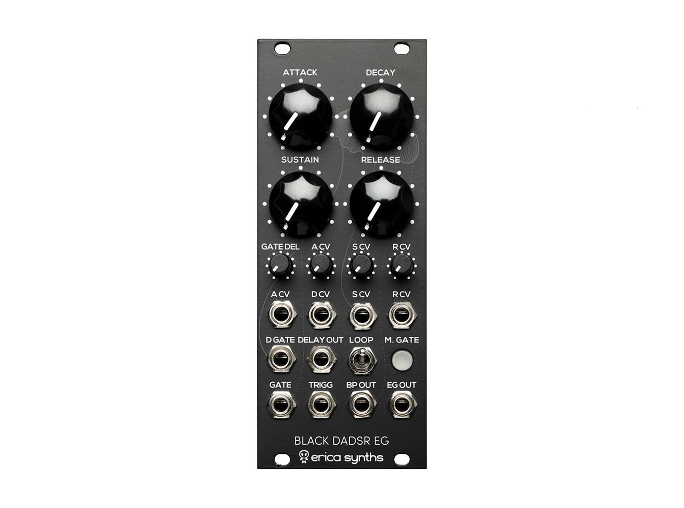 Erica Synths’ Black Series DADSR is an exponential envelope generator with adjustable delay gate output. Easily used for complex soundscapes and interwoven modulations, this DADSR features a looping mode to function as an LFO and the delay gate stage is completely independent. Gain more control over the timing of your modulation with the Black DADSR from Erica Synths.