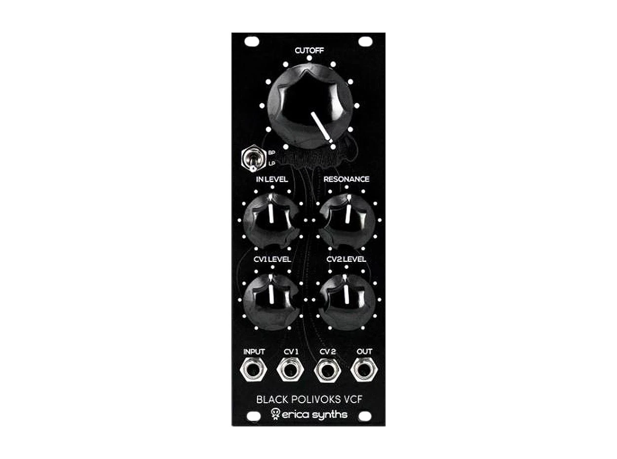 The Black series VCF v2 is a high-end voltage controlled filter which is one of the leading emulations of the iconic Formanta Radio Factory Polivoks available on the market today. Twist the big cutoff knob for precision filtering control and intricate design. Right below is a toggle that switches between lowpass and bandpass filtering. The VCF v2 features 4-knobs for: in level, resonance and the level for CV1 and CV2. Adjust the resonance knob for incredible sounding sweeps and self-oscillation. On the bottom is the patch for audio signals, CV1 and CV2 inputs and the VCA output. With extended cutoff and independently buffered inputs, the VCF v2 is perfect for studio work and live performance.