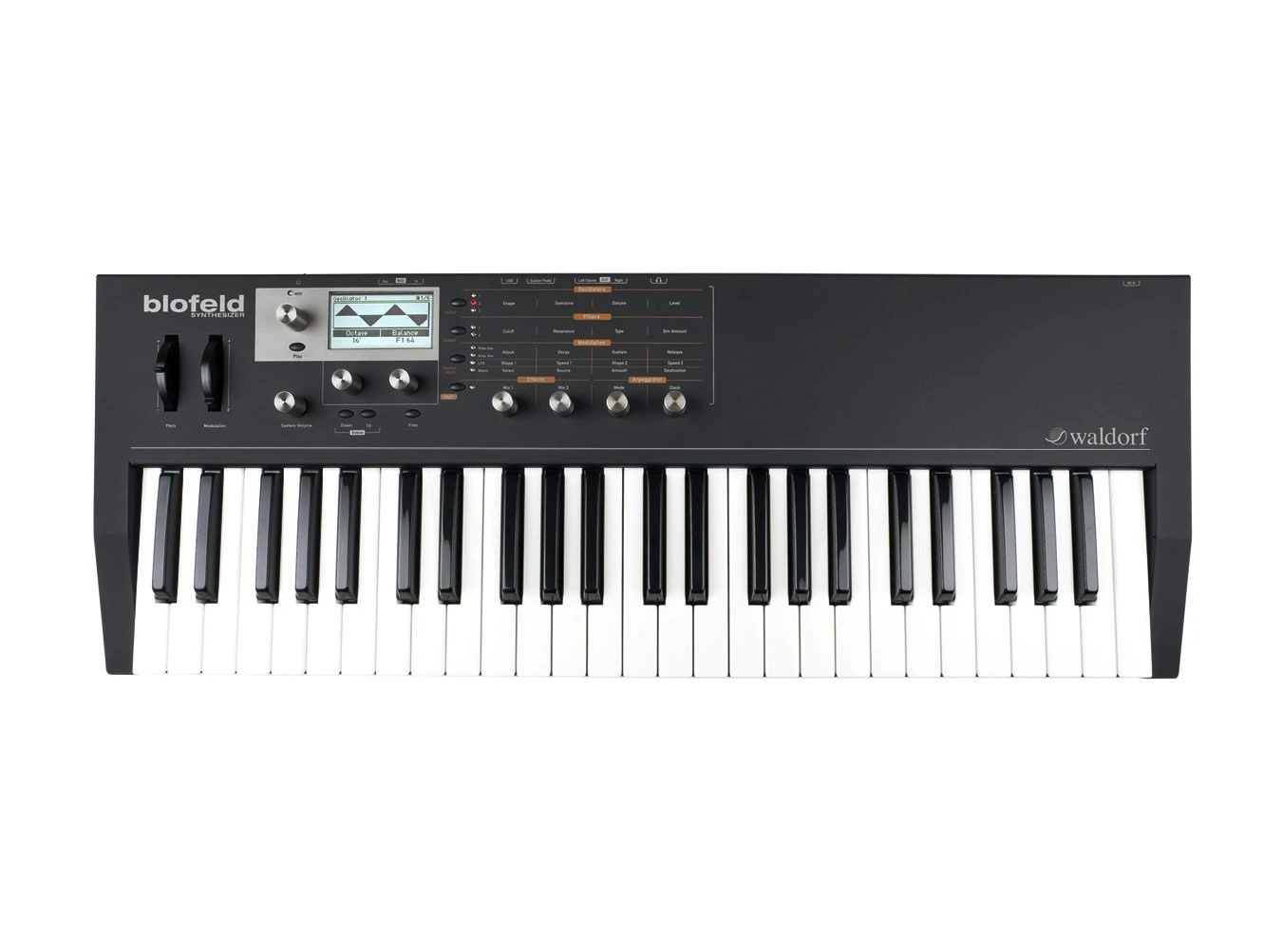 Waldorf’s Blofeld Keyboard is an update on their famous desktop module…and then some. Unlike the original, this version features a 49-note weighted keyboard with aftertouch, 25-voice polyphony, pitch and modulation control, and 60MB of sample memory just waiting for custom samples!