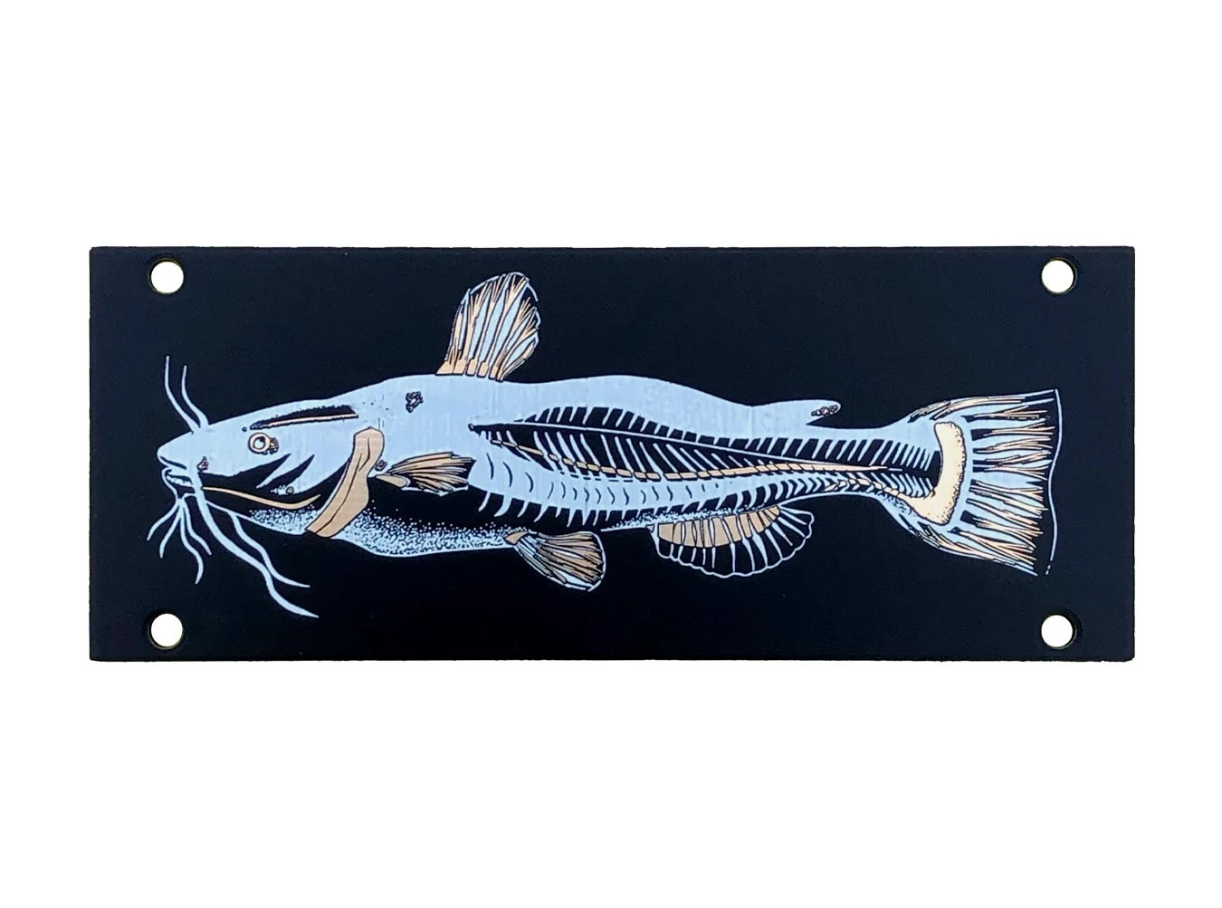 A full rack is a happy rack with the Catfish Panel from Materia in the Pulp Logic 1U format. Featuring a gorgeous hand drawn catfish design with gold accents over a matte black panel.