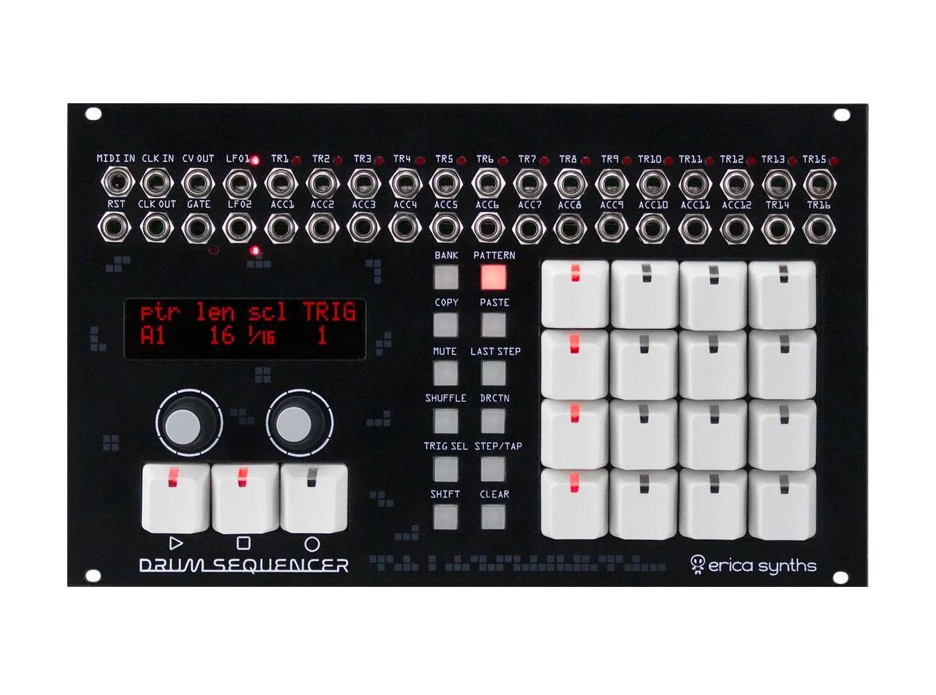 Drum Sequencer brings traditional 909-style sequencing to the Erica Synths lineup. Specifically designed for live performance, Drum Sequencer features an intuitive user interface where all of its functions are readily accessible. It features trigger outputs, a CV/Gate output (great for synchronizing basslines), and dual LFOs for plenty of modulation options.