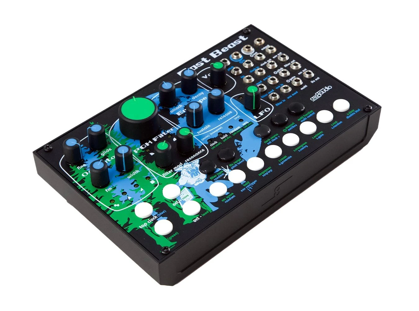 Unleash your ravenous side with Cre8audio’s East Beast, a semi-modular synthesizer based around “East Coast” synthesis ideologies with a fully analog audio path. Designed in partnership with Pittsburgh Modular, East Beast further expands upon the amazing Lifeforms series and utilizes both an analog oscillator with classic and highly stable wave shapes as well as a PGH resonant multimode filter with low, band, and high pass modes. The oscillator and filter can be modulated in a number of ways, with pre-defined routings of the analog envelope straight to the fitler and options to route the analog dual LFO to the oscillator’s FM and pulse width inputs for gnarly and thick timbres. Alongside its analog parameters, the East Beast features a multimode output for routing a digital multi-modulation source of LFO, envelope, and additional CV control to be patched anywhere throughout the device.