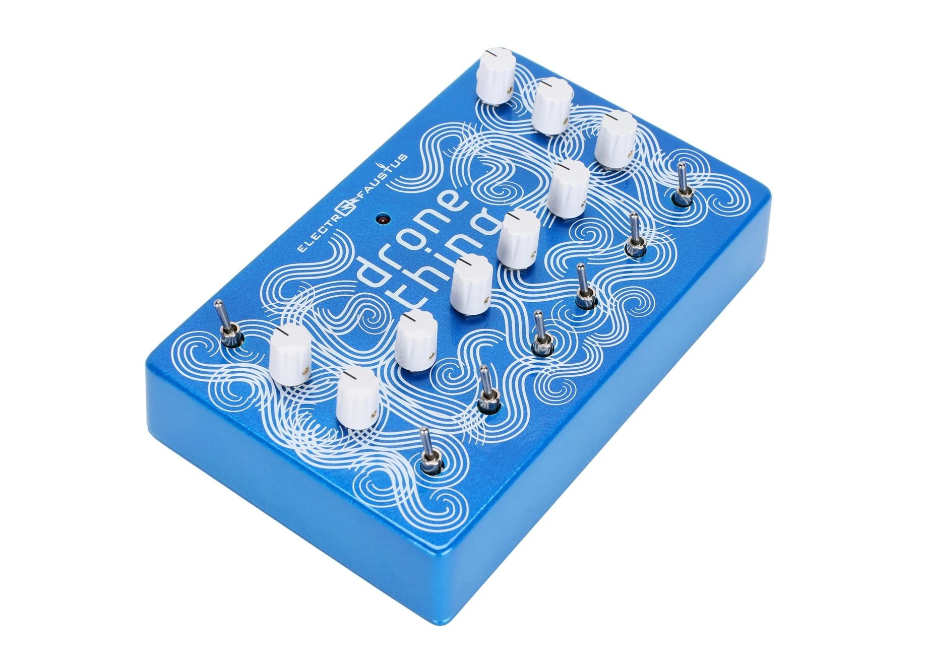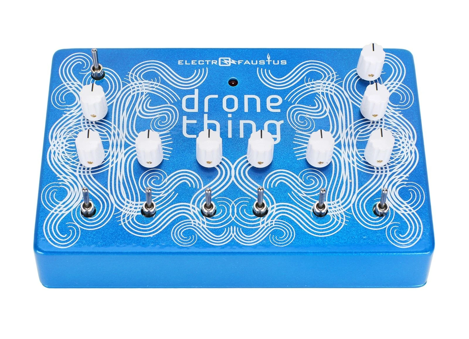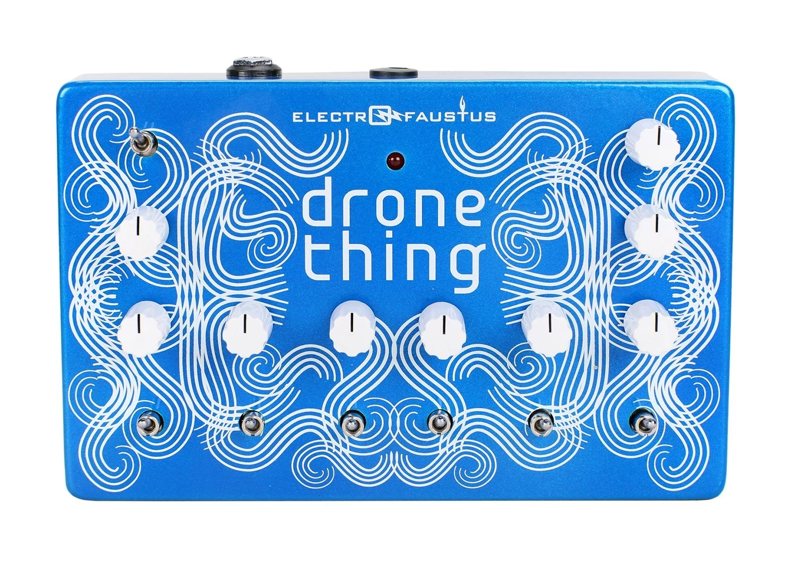 The E109 Drone Thing, from Electro-Faustus, is a powerful drone pedal that boasts a total of six polyphonic oscillators, each with corresponding front panel pitch control knobs. The oscillator on the far left enjoys a frequency range that extends much lower than the other five, enabling it to be used as an LFO for the creation of unique rhythmic patterns that can interact with the other oscillators in strange and beautiful ways.