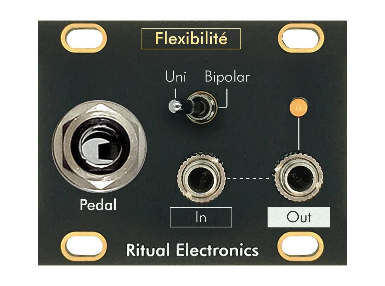 Integrate expression pedals into your Eurorack patches with the Flexibilité from Ritual Electronics. With your favorite expression pedal plugged into the Pedal input, Flexibilité generates either a unipolar or bipolar offset voltage. Alternatively, patch in an audio signal and use the pedal to control its volume. When two hands isn’t enough, your foot is plenty capable of contributing to your patch, too!