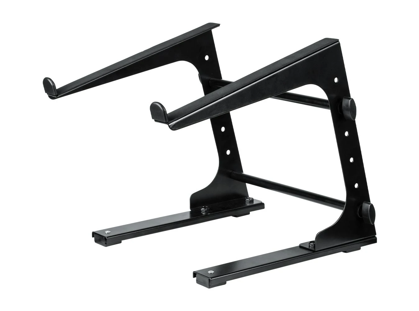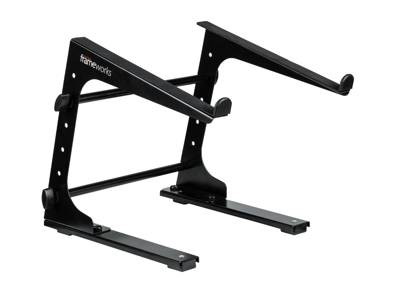 Mount and elevate your laptop or controller using this collapsible laptop stand from Gator Frameworks. It’s great for raising your device to a comfortable height. The stand works with many laptops, controllers, or small-sized mixers. The lightweight and compact design make it easy to set up and store. Your device stays safely in place thanks to the padded surface, front bumpers, and non-slip feet.