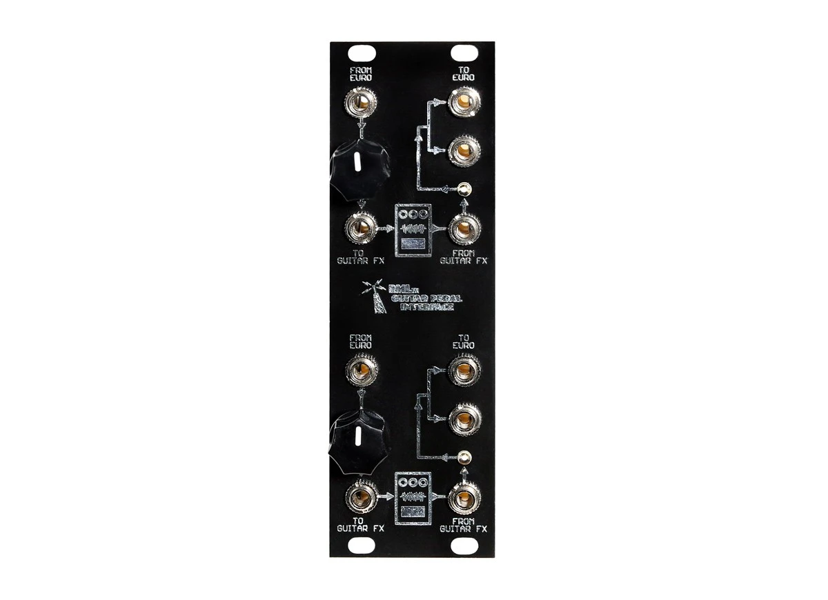 The GPI Guitar Pedal Interface from Retro Mechanical Labs is an excellent way to get Eurorack modular synthesizers and guitar pedals to play nice. It includes two separate channels, to be able to interface with Stereo pedals without needed a second unit. On the output of the GPI is an attenuator, which brings down the level of the signal to a level appropriate for guitar pedals. This will ensure the input to the pedal won’t be clipping from the loud levels of Eurorack signals. On the input of the GPI, there is a clean preamp to boost the levels outputted by the pedals to modular level. One will need a few 1/4″ to 3.5mm cables which are available on the Perfect Circuit website.