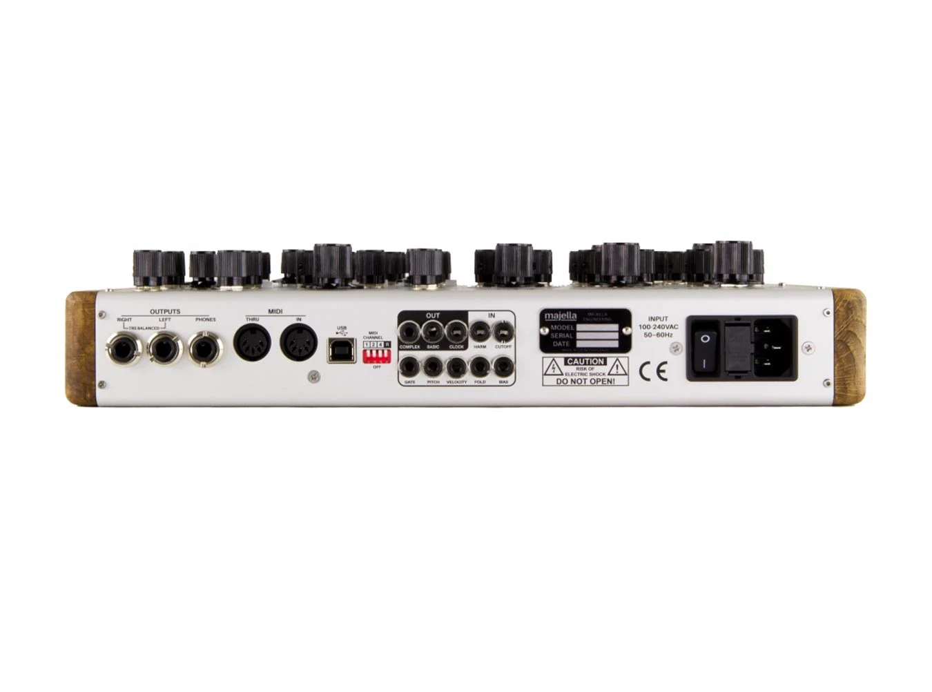 Finishing out the signal path, Implexus introduces a fantastic stereo digital delay with analog mix control as well as time, feedback, and clock sync controls. Controlling Implexus is simple and quite capable with accessibility over MIDI USB or 5-pin DIN as well as CV gate, pitch, and velocity inputs. Implexus also features loads more CV inputs and outputs for sending and receiving clock, utilizing the two main oscillators elsewhere in a modular system, and even to modulate parameters such as the filter cutoff or the wave-folding amount. Majella’s Implexus combines opposing ideologies to create a versatile, unique, and easy to use synthesizer for making solid leads, basses, experimental sounds, or anything you can think of.