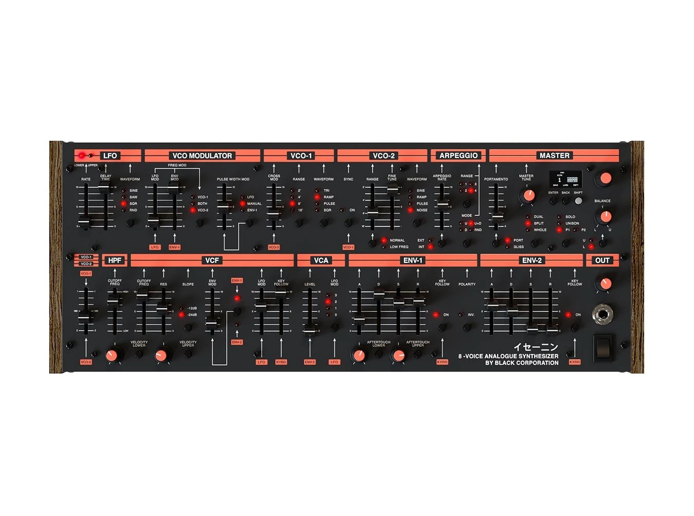 Not simply a clone or revival of a classic instrument, Black Corporation’s ISE-NIN is a desktop-friendly analog synthesizer inspired by the legendary Roland Jupiter-8 that truly aims for the stars. Adorned with sliders and vivid orange labeling straight out of the 1980s, the ISE-NIN is true to the original with eight voices loaded up with legitimate analog VCOs and liquidy lowpass and highpass filters. But in true Black Corp. fashion, they’re not content with conceptualizing a modern synth and leaving its capabilities dampened by technology from over 40 years ago.