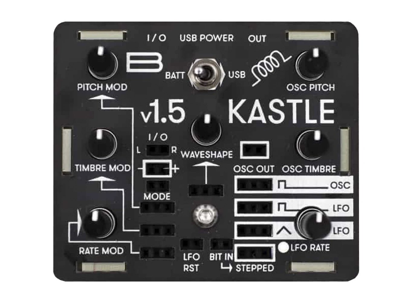The Kastle is a compact modular synthesizer that can be powered with batteries or via USB. It emits distinct modulations and inherently intricate sounds. It can be used in a self-contained manner or integrated into a larger setup. v1.5 consists of a complex oscillator and an LFO with a stepped waveform generator.