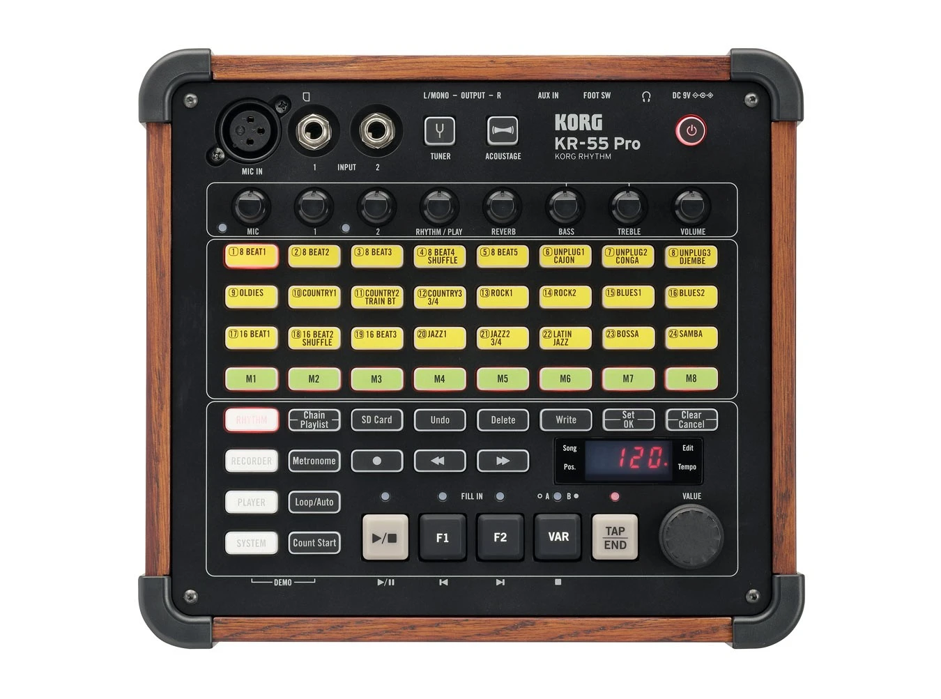 The KR55 Pro is a multi-functional rhythm machine that contains a wealth of rhythmic patterns and mixer/recorder functionality, all accessible via straightforward interface.