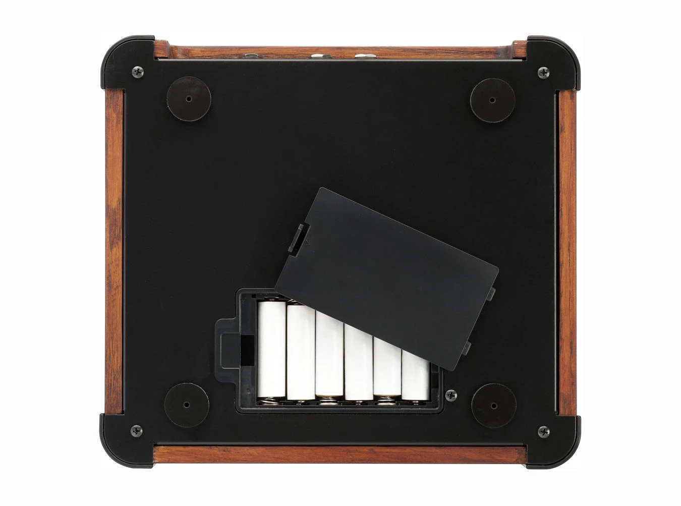 - Optional battery power via six AA batteries