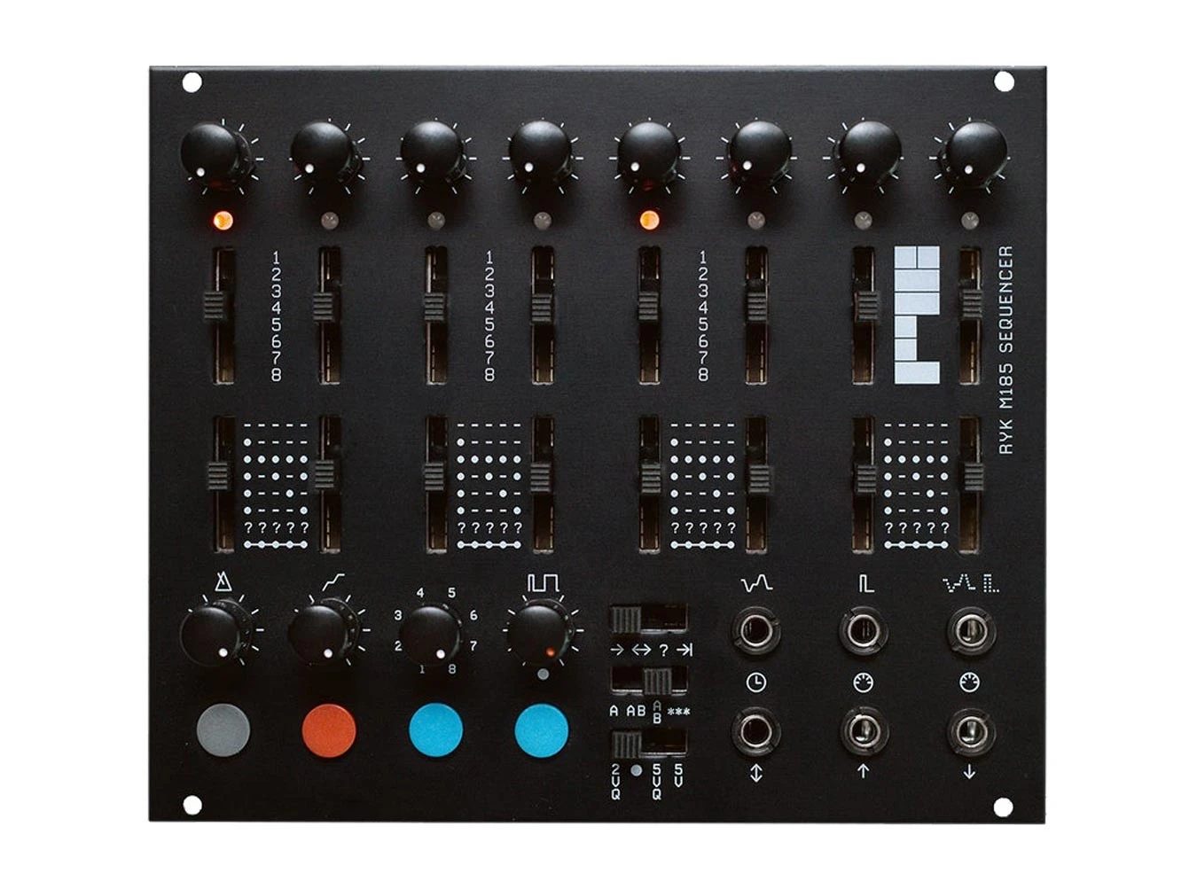 The RYK Modular M185 is an intuitive step sequencer with a straightforward interface and plenty of options for creative sequencing. While it may seem like a simple eight-step sequencer, digging a little deeper unlocks a vast range of possibilities. It features two channels, A and B. A always produces both a CV and gate, but B allows you to select between CV, gate, or sync output.