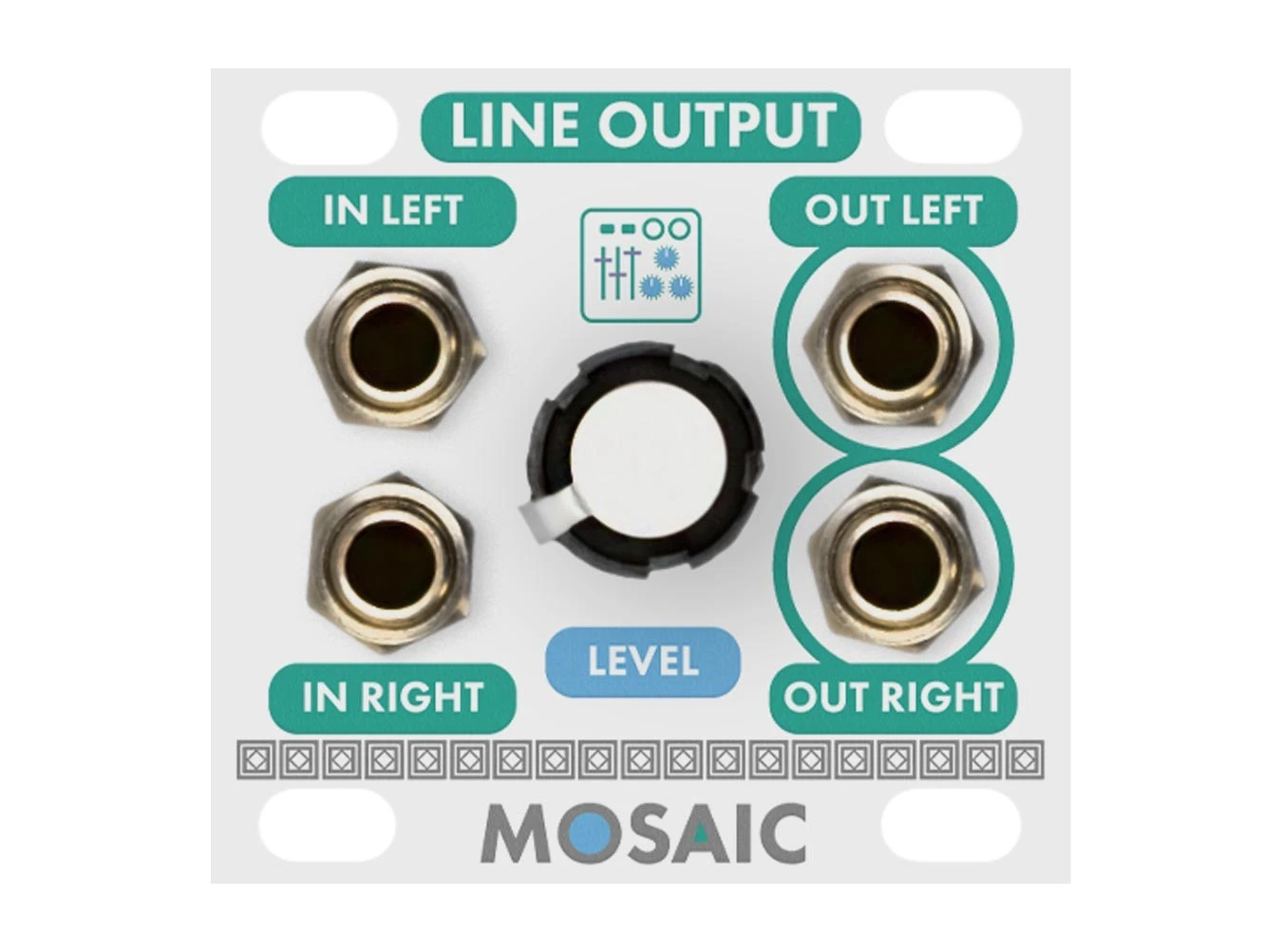 Knock those blazing hot modular signals down to line level with the help of the 1U Line Output from Mosaic. Line Output’s attenuator allows you to dial in the gain reduction to suit your needs, allowing you to connect two channels of modular-level signals to various line-level destinations, such as audio interfaces, patchbays, samplers, and more.