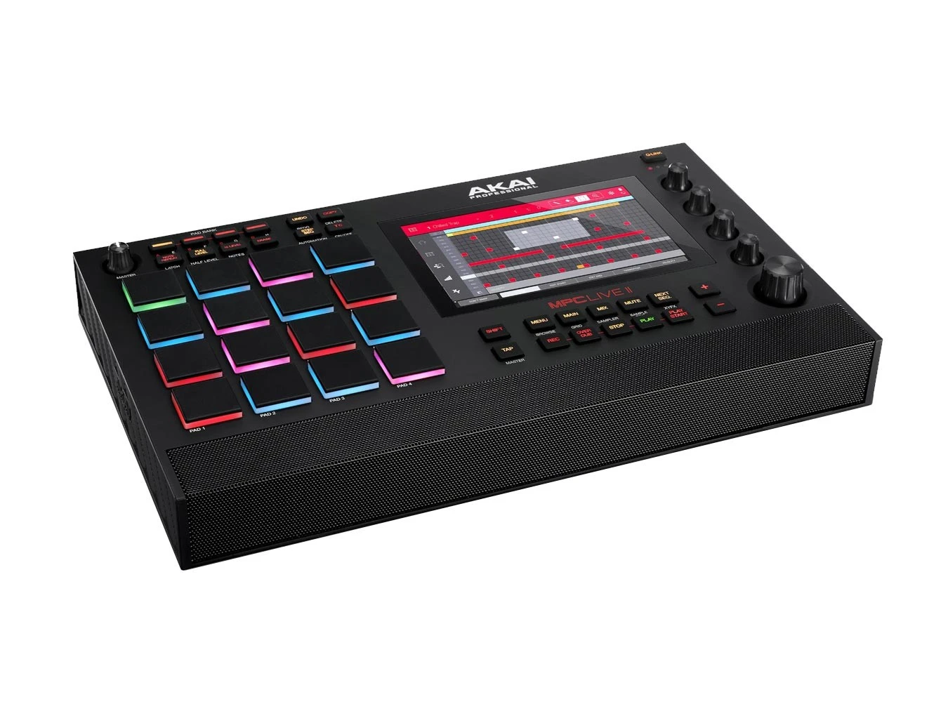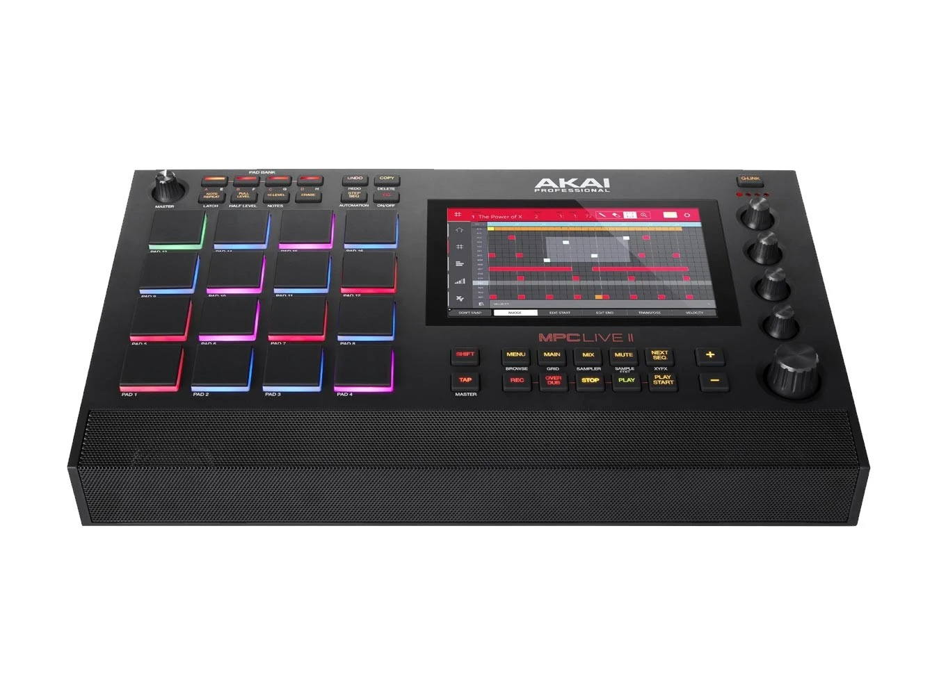 The MPC Live II has a multitude of connections, making it compatible with a variety of other gear. Connect to your modular gear with the four stereo TRS CV/gate jacks for a total of eight assignable CV or gate outputs. Send and receive MIDI messages from external gear using the two pairs of MIDI I/O. Record samples from phono or line level signals with the designated inputs. Send audio to up to six destinations with the three stereo pairs of TRS outputs. No speakers handy? No problem, the MPC Live II comes equipped with professional level monitors built into the front of the unit. These optional speakers sound great and provide detailed monitoring of your sounds. Connect harddrives or computers using the USB 3.0 connectors or use the WIFI and Bluetooth connections for wireless interfacing. Connect to Ableton Live using Ableton Link to control your session from the MPC Live II. Use the MPC Live II on the go with hours of battery life available from the rechargeable lithium-ion battery.