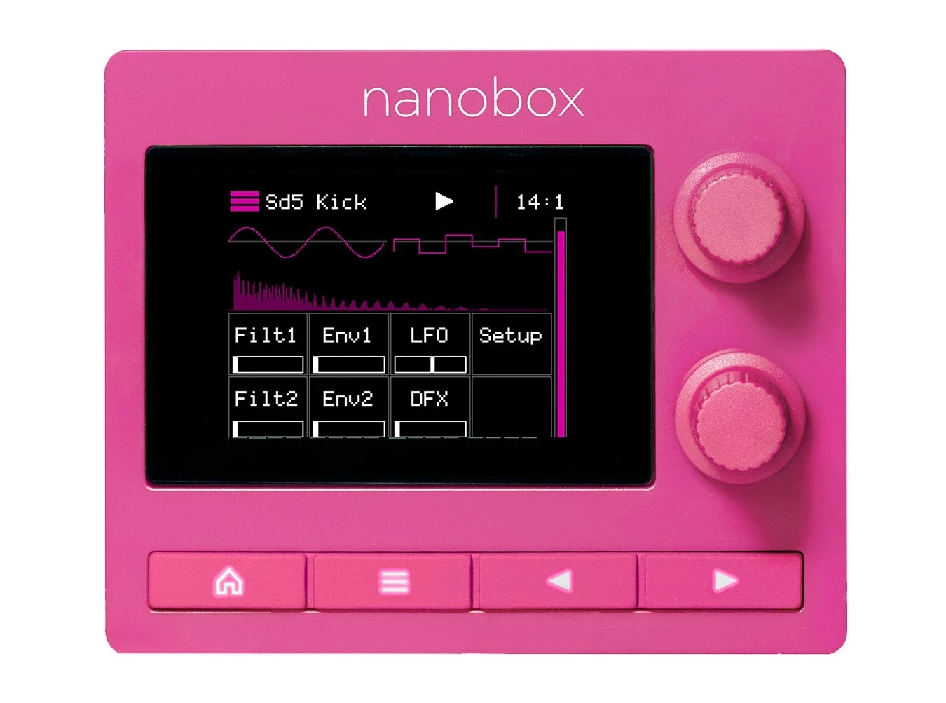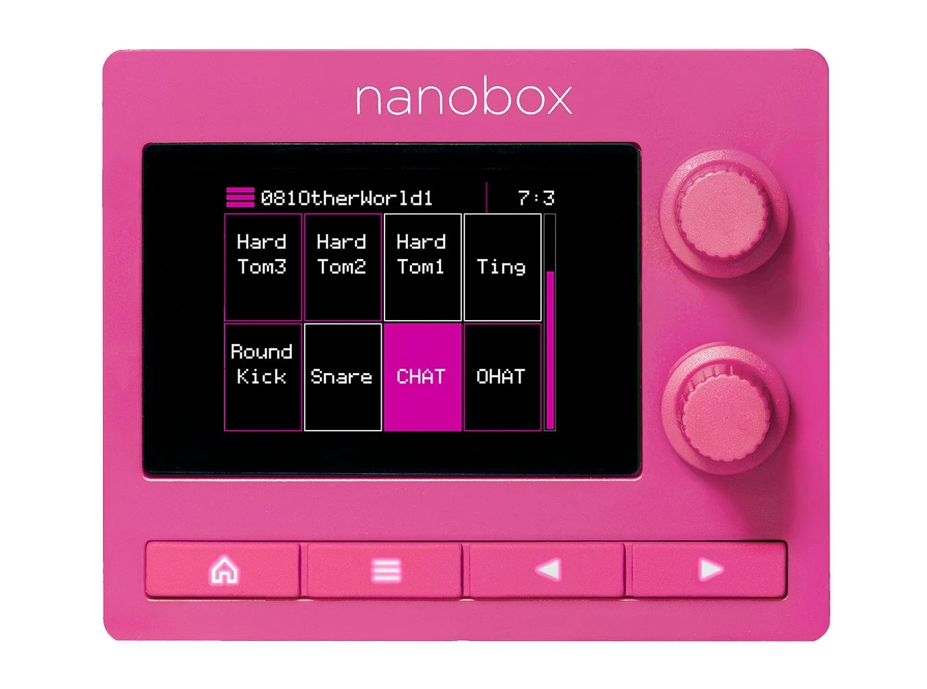 1010 Music adds to their colorful tiny family with the nanobox razzmatazz, a compact FM synthesis and sampling drum machine. Self-contained and compact, the razzmatazz uses its touch screen and minimal interface to effortlessly navigate the UI. Programming a pattern is easy, just load up your favorite sounds to the 8 pads and either record your playing or use the visual step sequencer to write out your patterns. After programming your pattern, you can save it to one of the 16 sequencer slots and easily recall it during a song. Sequences can be up to 64 steps in length and play in subdivisions of 1/64 to 8 bars giving you massive control over the timing.