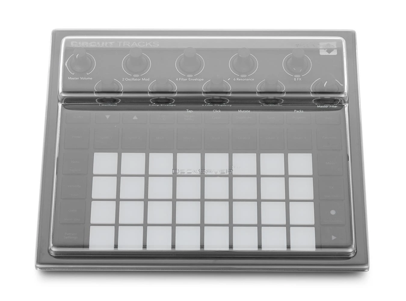 Add a smokey transparent layer of protection to your Novation Circuit Tracks or Circuit Rhythm with this Decksaver cover. Low profile and custom molded polycarbonate provides a snug shell that prevents liquid, dust, and falling objects from damaging delicate pads and knobs.