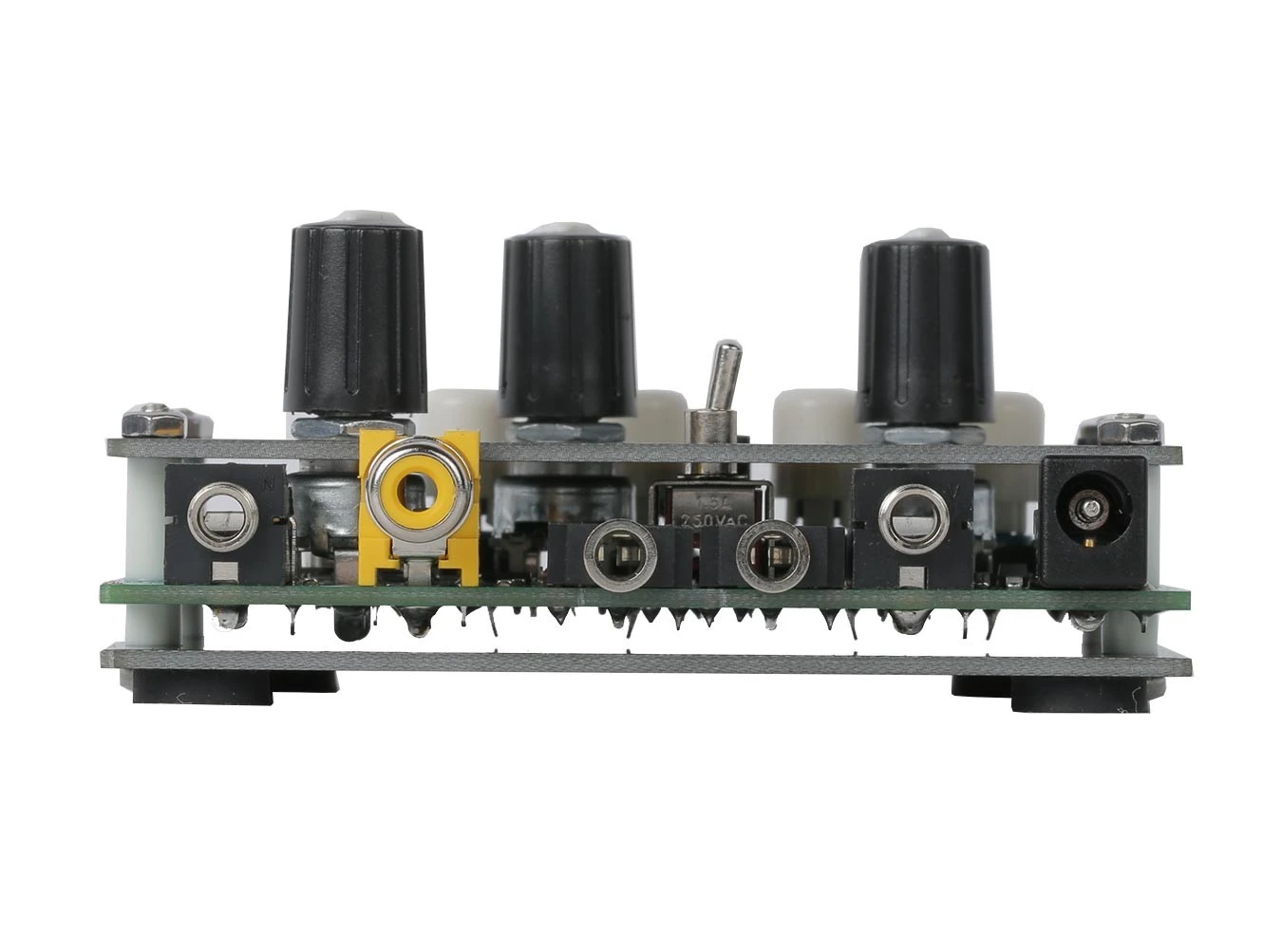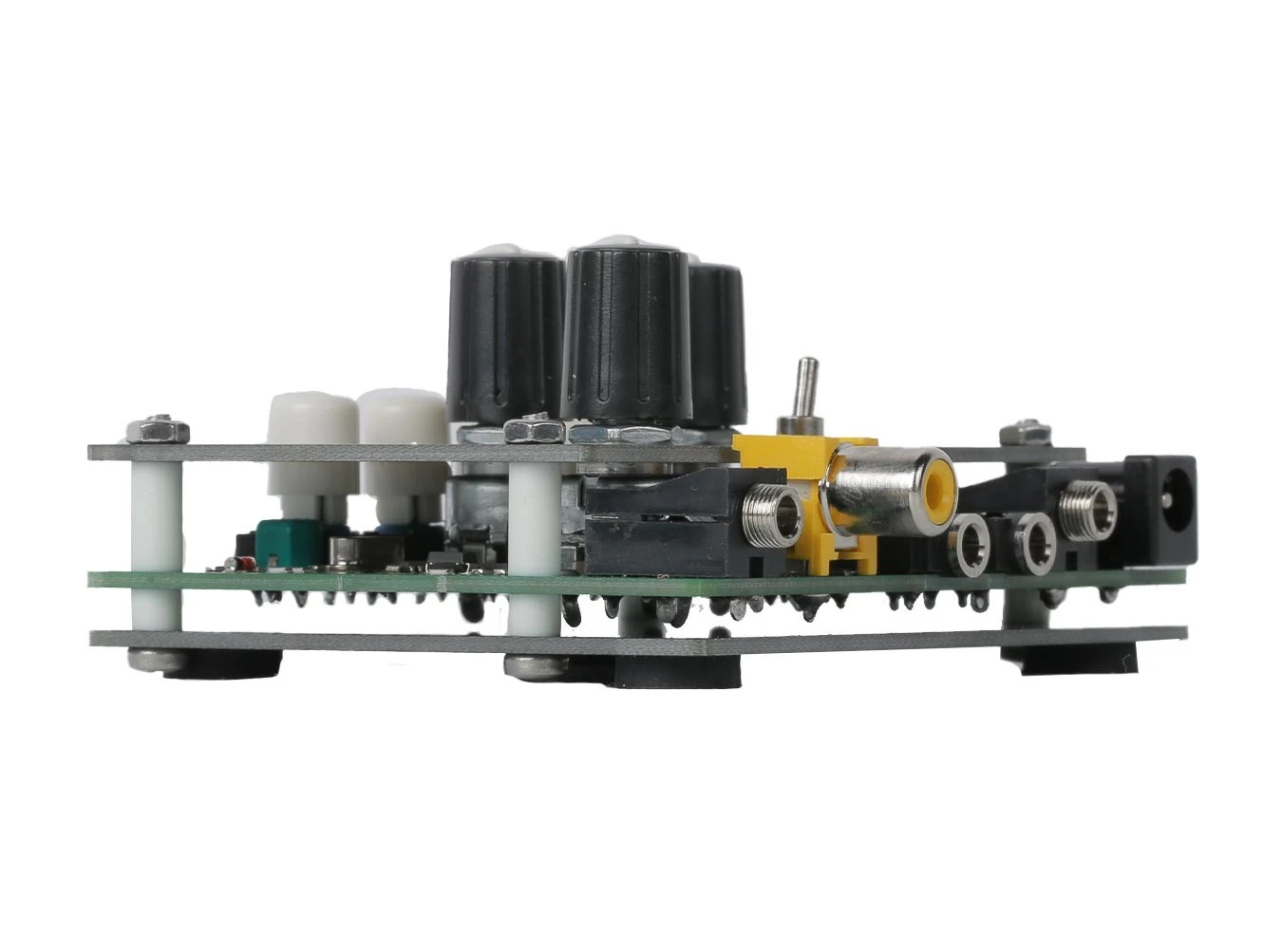 There are mono 3.5mm CV inputs for the pitches for the oscillators, plus a stereo 3.5mm input for the starve which works as a multiple feed through. The outputs include both mono 3.5mm audio jack for the two oscillators and RCA for composite video. The RCA output is black and white and creates very stark grayscale patterns. It works in PAL, NTSC, and a special NTSC mode designed by Gieskes for projectors. This lofi audio/visual synthesizer is a great way to jump into video synthesis without having to know much theory behind it. Plug in some CV, twiddle the knobs, see pretty patterns, repeat.