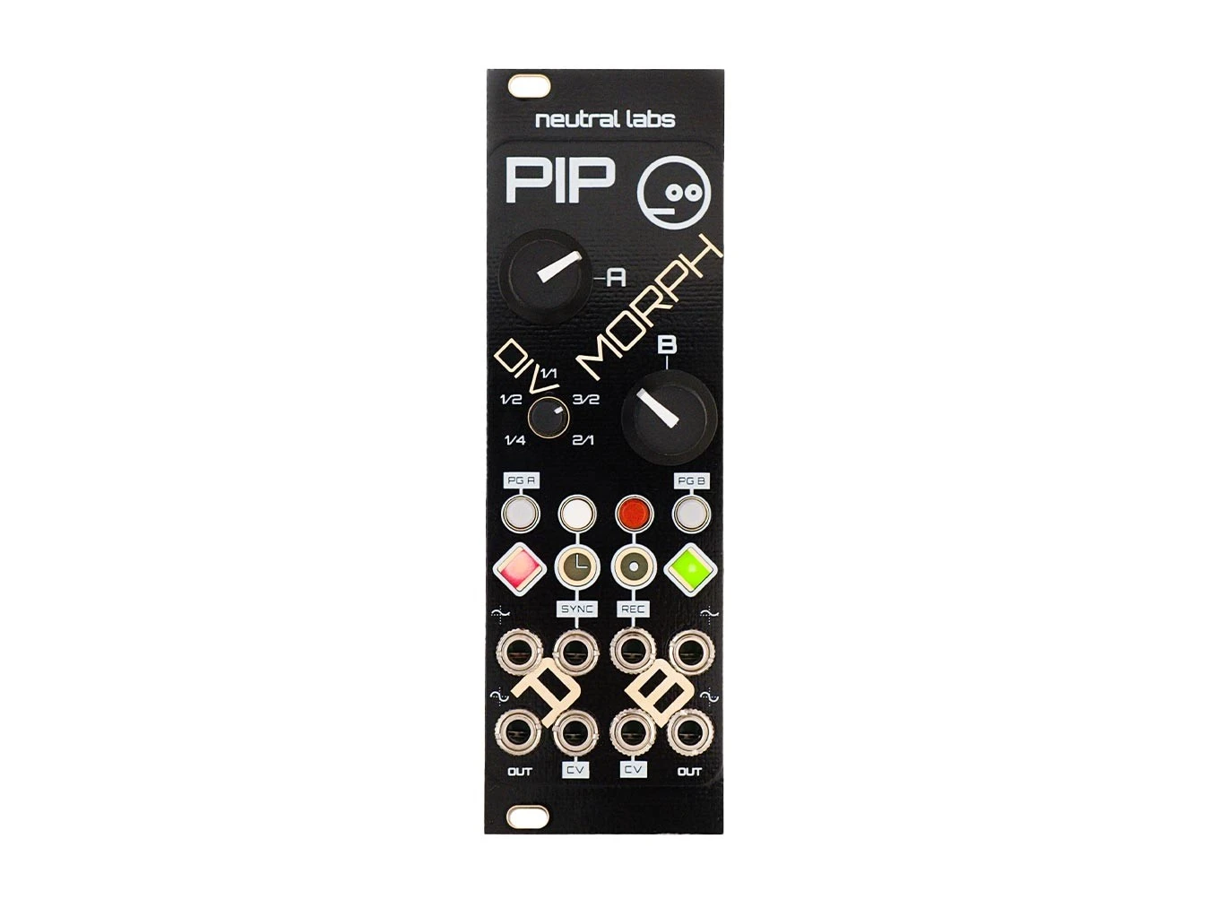 Pip from Neutral Labs is a clocked two-channel CV generator and recorder that can create interesting motion and movement in your patch. Use the built in wavetables to extract CV, record external CV in, or record the knob movements and have it all synced to an internal or external clock. You can also have the Pip fun in free mode where the channels influence each other for complex, woozy modulation. The two morph knobs are bi-directional and at noon there is no CV coming through, but if you record external CV in, this position is where it will be stored. CW will increase the amplitude of the CV for either the S&H circuit or one of the wavetables, while CCW will do the same for either a Sample & Glide circuit or another wavetable—all dependant on the settings. Each channel has an output for 0–5v and -5v to +5v making this incredibly useful for myriad applications. If you need a heaping dose of randomness in a small package, the Pip from Neutral Labs is a fine option.