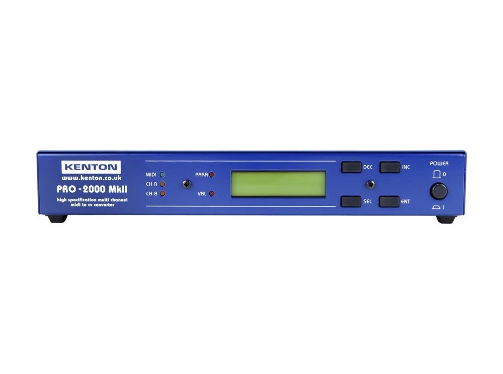 The Kenton Pro 2000 MKII converts MIDI data to CV in order to control all types of monosynth. The unit features MIDI IN/OUT/THRU sockets, as well as a DIN Sync 24 socket. There’s also a clock output with three selectable modes, and two independent CV outputs (switchable between V/Oct, Hz/V, and 1.2V/Oct scaling).