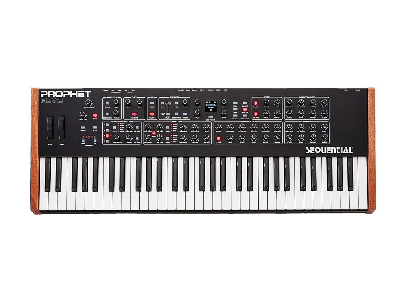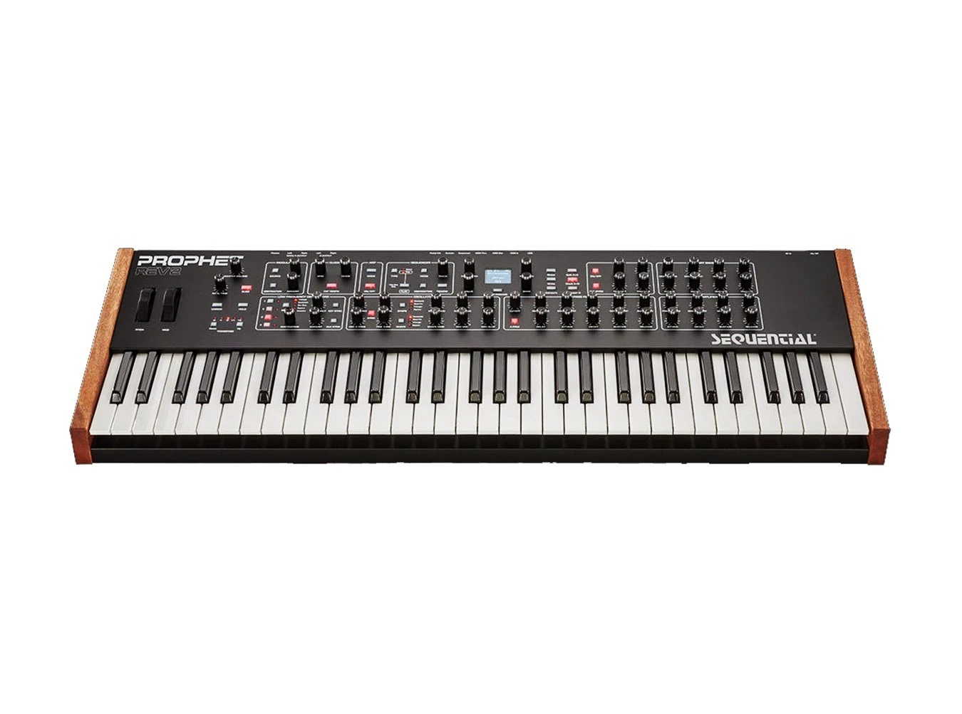 The Prophet Rev2 from Sequential is a reenvisioning of the Prophet ’08 poly synth that retains and expands upon all of the main features of the original. It has twice the polyphony – making 16 voices, as well as twice the mod matrix. Also included is waveshape modulation on all waveforms and digital effects per layer in split or stacked voice mode including delays (bucket-brigade and standard), reverb, distortion, phase shift, chorus, and ring modulation.