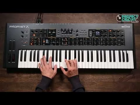 In terms of hardware, the Prophet X features 3 OLED displays, an integrated PSU, USB, and a 61-note semi-weighted keyboard complete with velocity and aftertouch.