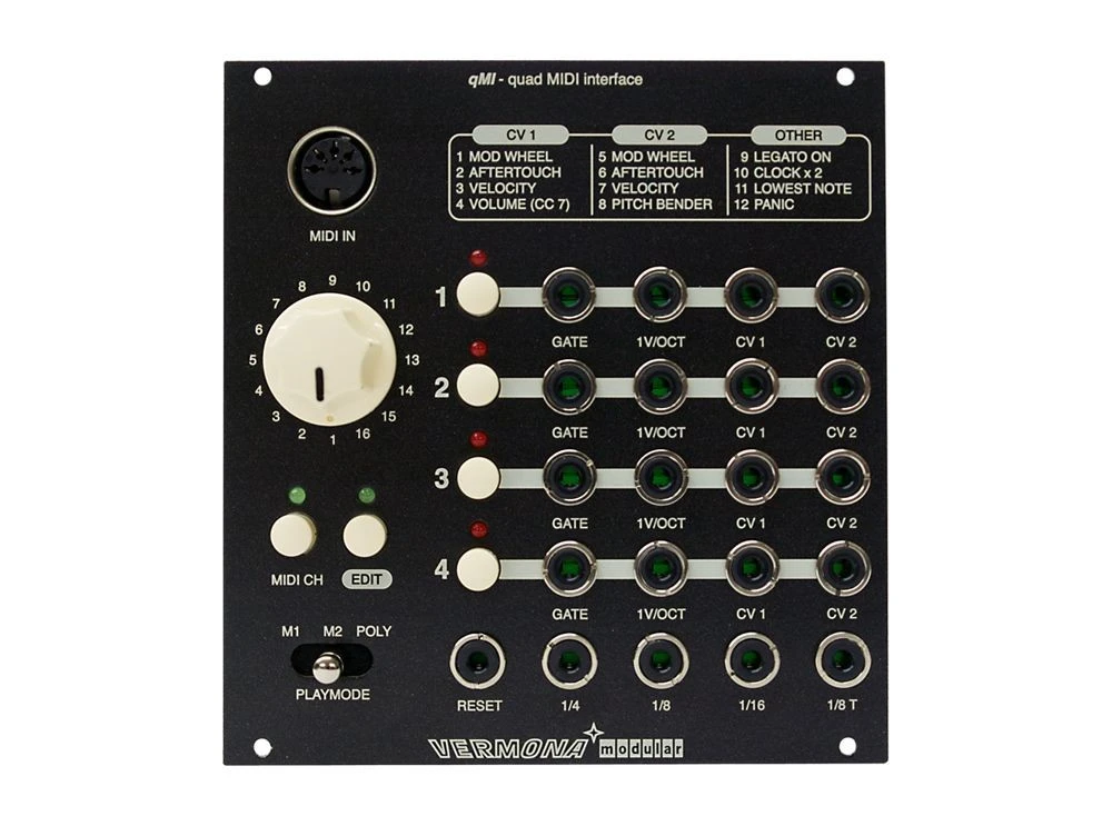 Vermona’s qMI MIDI Interface V2 arguably represents the pinnacle of MIDI to CV modules. Inspired by the voice allocation unit from Vermona’s previous PERfourMER mkII, the module affords users a means of playing their synthesizer both monophonically and polyphonically.