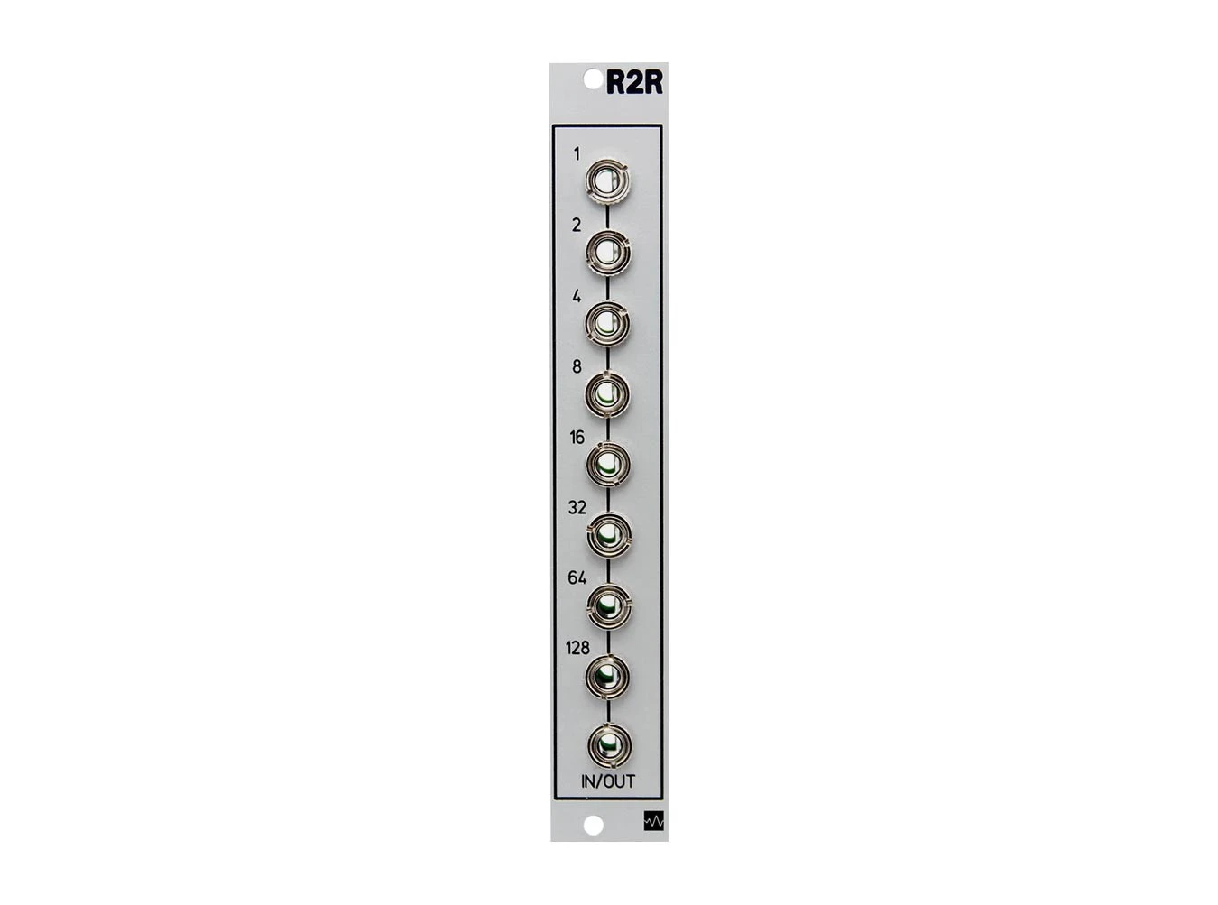 The R2R from Wavefonix is an 8-bit passive DAC that brings unique and ingenious digital to analog conversion alongside multing, mixing, and much more. Feed a digital signal into any of the eight inputs and watch how the quality and clocking of the original signal converts into a stepped and crunchy lo-fi signal out of the analog In/Out socket. Feeding analog signals into the In/Out can produce an attenuated multiple of signals with varying levels of attenuation, and the same can be down backwards as a mixdown of signals at various levels. Create crushing sounds and modulation or unique attenuation from and across audio and CV signals with the R2R module.