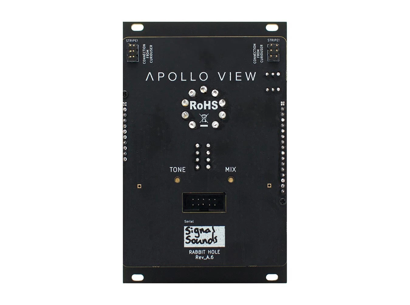 Packed to the brim with character, Rabbit Hole is the first module by Apollo View, combining facility as a mixer with four stages of saturation and distortion, provided by both tube and solid-state circuits. With two channels labeled A and B, each offers an input VCA with Gain control and control voltage jack. Channels are summed before hitting the Drive circuit, a solid-state design with hard-clipping tendencies at extreme settings, then moving onto the starved 12AU7 tube section. For truly searing patches, flip on the OWTH switch, short for “Off With Their Heads”, and make heads roll with a diode clipping circuit. There’s also voicing switches for the tube, feedback capabilities, and the option to expand the number of inputs with the Curiouser module. Grit up your patches with Apollo View’s Rabbit Hole.