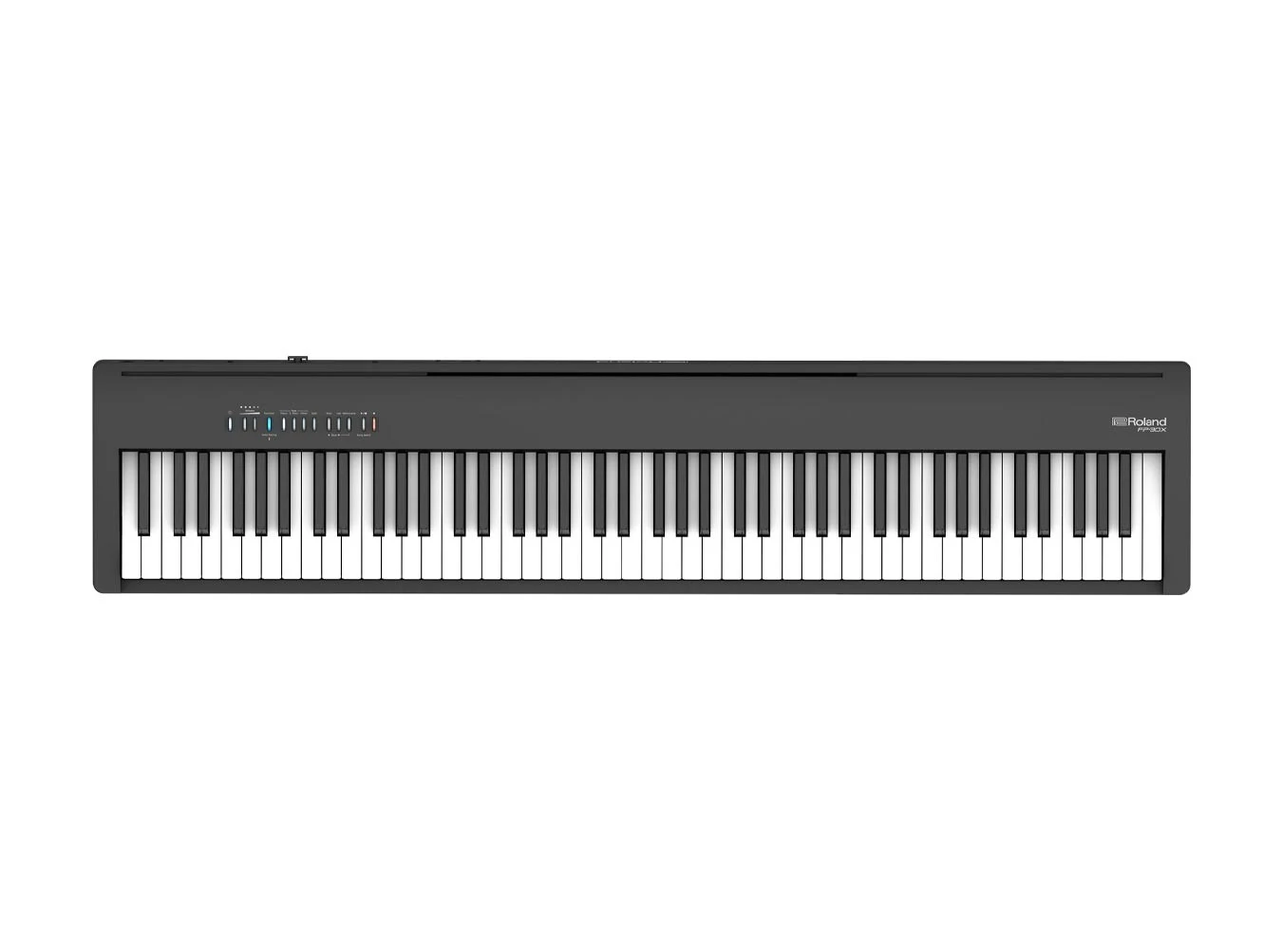 The Roland FP-30X-BK is an affordable 88-key keyboard great for musicians of all styles. It uses Roland’s SuperNATURAL piano engine which provides powerful sound generation and has 56 available sounds including strings, voices, organs, and drums. It features both split mode with adjustable split point and layering mode which allows you to play multiple sounds at once. For lessons, there is the Twin Piano mode which allows two people to play the keyboard at once in the same octave range. There are eight available rhythm types with a tempo range of 20-250 BPM. The FP-30X also offers Bluetooth for MIDI data communication between the FP-30X and mobile device as well as a USB output. Additionally, it features a USB-to-device memory slot that allows you to record to the built-in SMF (standard MIDI file) recorder or play back WAVs or SMFs.