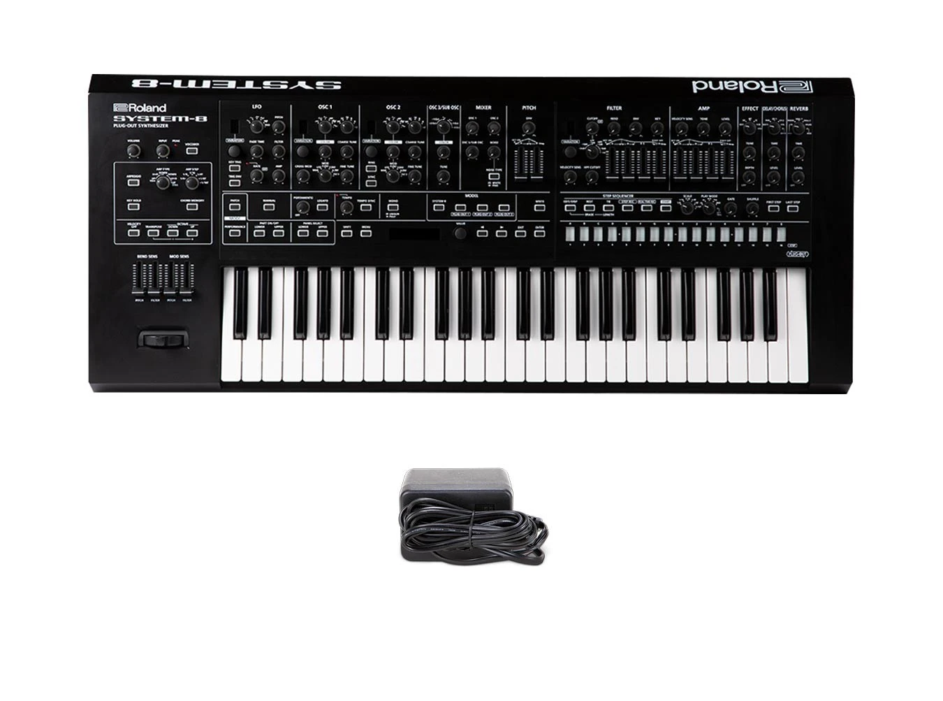 The Roland System-8 Plug-Out Synthesizer uses Analog Circuit Behavior (ACB) technology to drive the powerful eight-voice, three oscillator System-8. Armed with high resolution controls like sliders and knobs, the ability to control three Plug-Out synths, and outstanding filters and effects, this is truly a monster of a synthesizer.