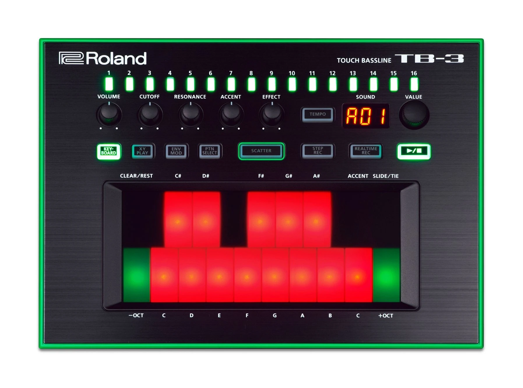 The TB-3 has been constructed with ease of use in mind, and features an intuitive step entry process where users can program and play on-the-fly with the unit’s touchpad. The pressure sensitive, illuminated touchpad allows for expressive control over dozens of parameters, including pitch, volume, and filter settings.