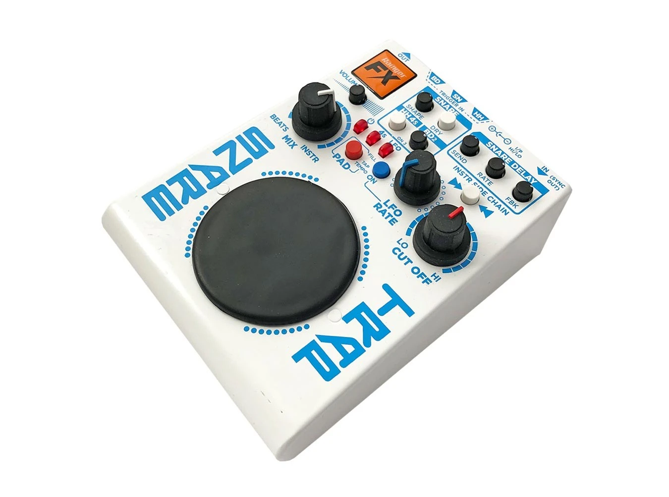 The Rainger FX Snare Trap is a powerful groove machine in a small form factor, perfect for quickly building rhythmic backing tracks in your pedal board or your desktop setup. Combining analog and digital synthesis techniques, the Snare Trap features a bass drum, snare drum, and hi-hat, with various timbral controls over each. The big rubber pad is multifunctional, and can be used for either tap tempo or triggering snare drum fills and bursts of noise. Dedicated effects including delay and a filter are easily accessible via the front panel, allowing you to adjust timbres in real time, while intuitive edit controls facilitate quick adjustments to your groove patterns on the fly.