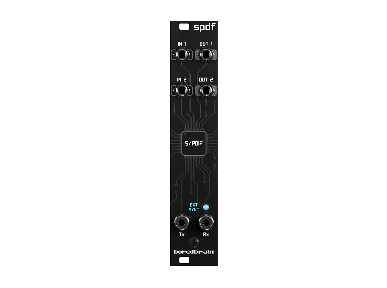 Boredbrain continues their tradition of creating highly useful interconnectivity modules with the Spdf, an S/PDIF encoder/decoder module. Simple in concept but elegant in execution, two inputs get converted to a digital signal while a digital signal gets converted to two outputs for Eurorack processing. Take in an external sync signal from your interface or generate a sync signal internally. Both the inputs and outputs are DC-coupled, meaning that you can send CV sources into your DAW or convert DAW modulation sources to CV using devices such as Bitwig and Ableton’s CV Tools. Integrate your Eurorack seamlessly with your S/PDIF equipped audio interface with Boredbrain’s Spdf module.