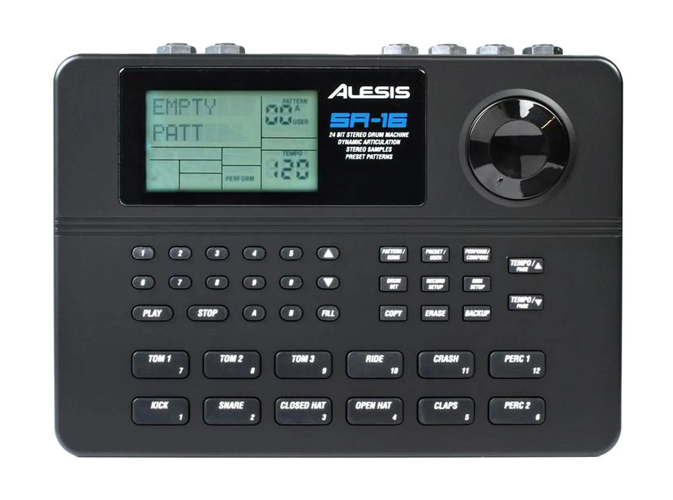 The Alesis SR-16 drum machine delivers is a programmable, MIDI-capable instrument great for use as a standalone drum machine, sound module, and more. The drum machine’s samples can be altered via velocity response, allowing expressive sound design and nuanced programming.