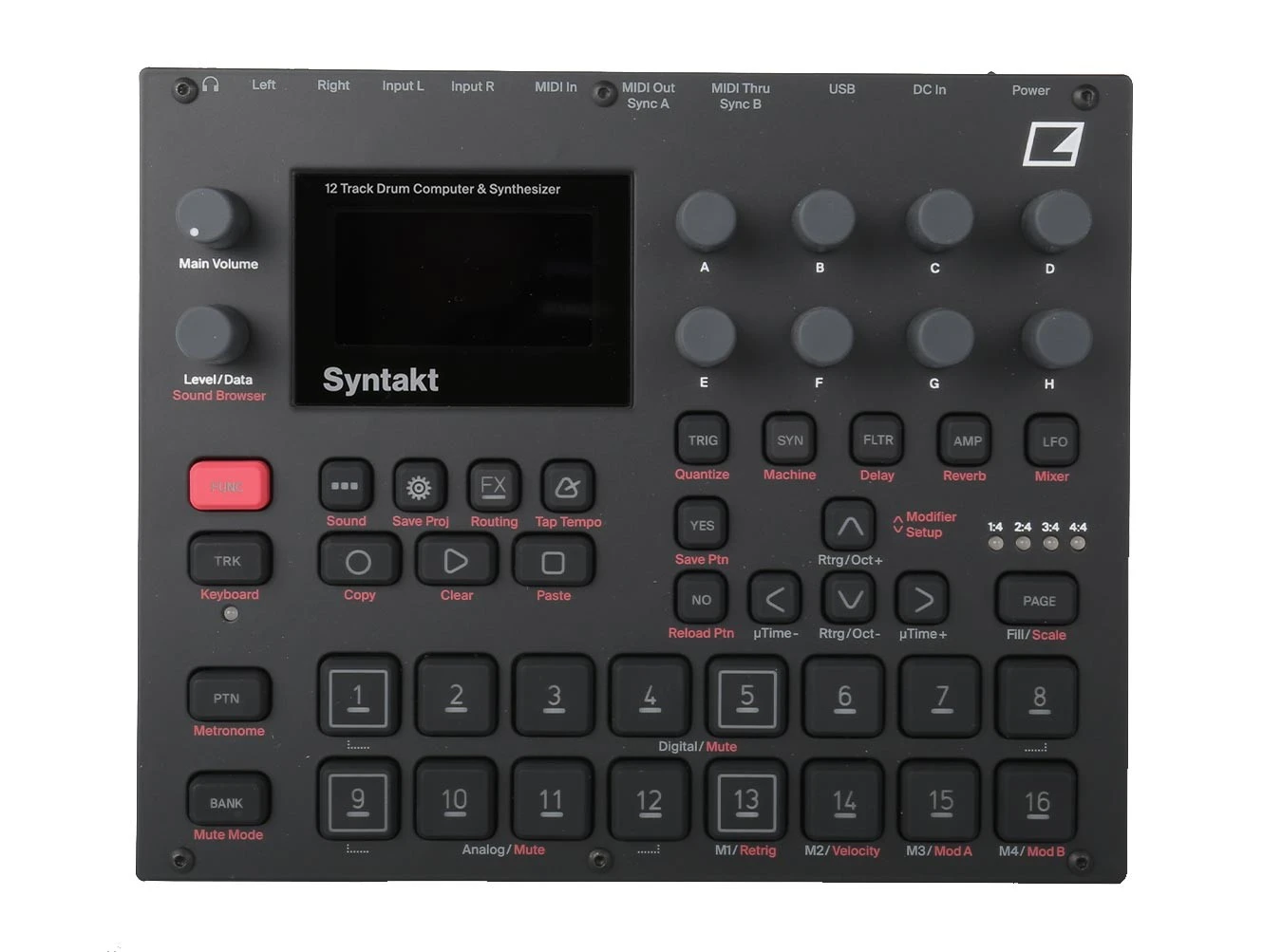 - 12 Voice Analog + Digital Drum Machine and Synthesizer