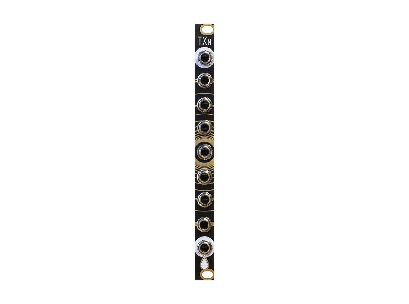 Based on the open-source “Nearness” module, dsp.coffee’s TXn is a 2hp panning mixer that has 7 fixed-panned inputs that correlate to where you place sounds in the stereo spread. The top and bottom of the module are outputs and inbetween are inputs that feed more of the audio signal to the output it’s closest to. What hard-panned? Patch into the top-most and bottom-most inputs. Perhaps you’d like to have something a little more asymmetrical? Then patch into the top-most and penultimate bottom-most input—or use all 7 inputs with different signals and have them spread across the stereo field. Keep you system compact white still having a stereo spread with the TXn from dsp.coffee.