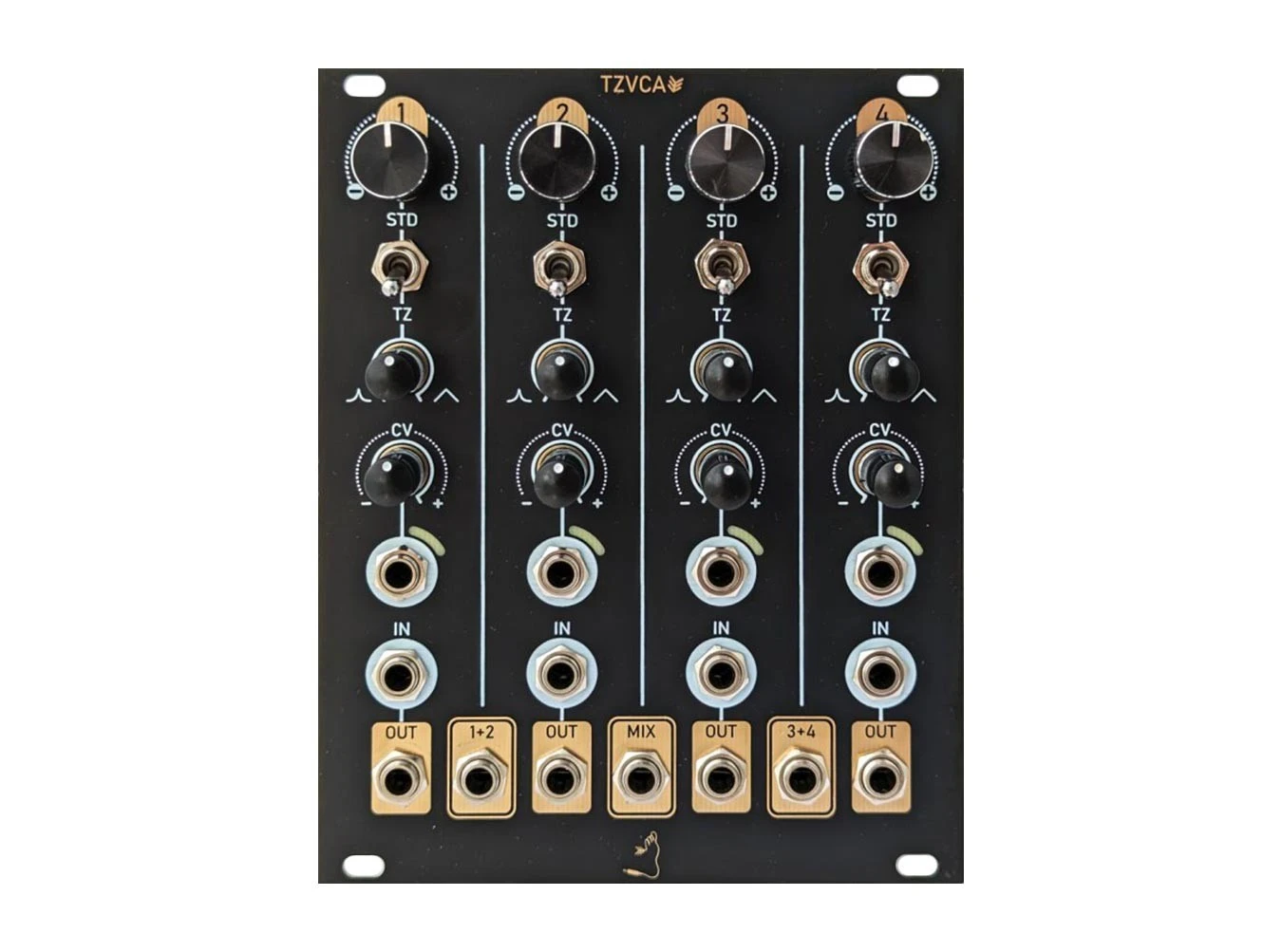Tenderfoot’s TZVCA is a four-channel, four-quadrant mixer that offers through-zero modulation, getting you into the world of ring modulation very easily. Each channel has an independent output, a 1+2, 3+4, and Master Mix output. Sweep between an exponential and linear response giving you a wide array of sonic possibilities. Perfect for audio, CV or a mix of both, the TZVCA is a wonderfully versatile VCA and mixer from Tenderfoot Electronics.