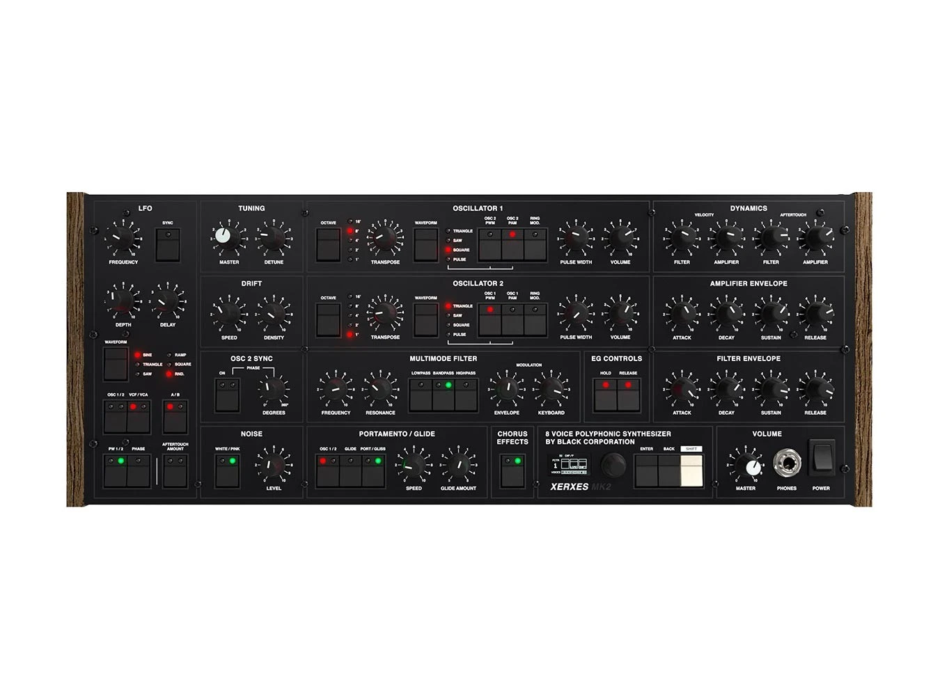Inspired by the Elka Synthex, the Xerxes from Black Corporation is an MPE-capable synth capable of everything from rich and spacious soundscapes, to leads and basses with noise and cross-modulated grit. And in a departure from their previous, “rack-mount only” instrument designs, the Xerxes is Black Corp’s first instrument to include wooden side panels for desktop use.