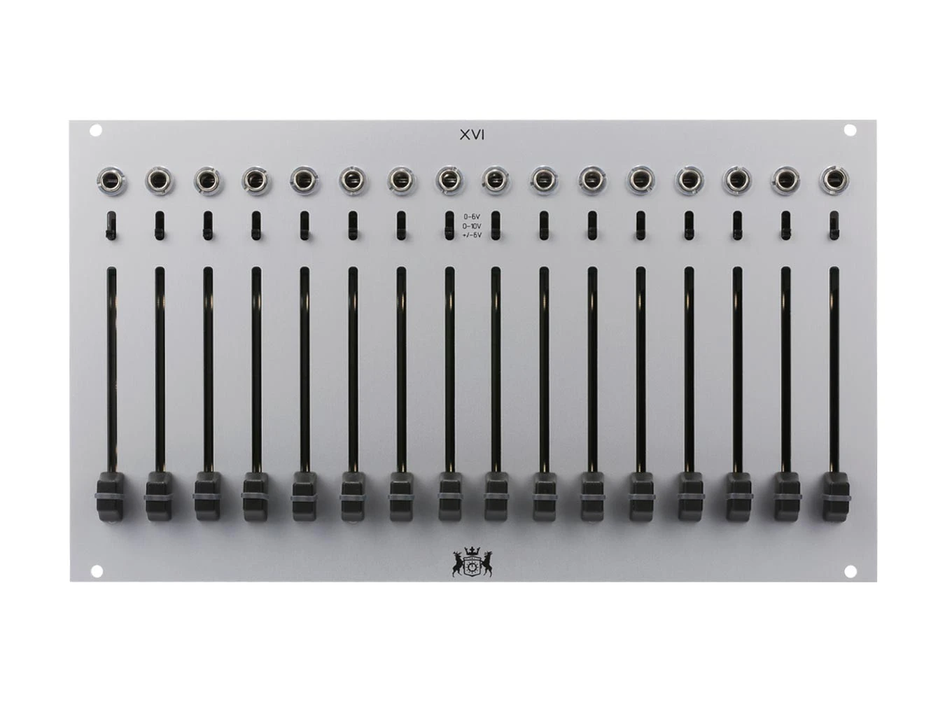 The Michigan Synth Works XVI 16 Channel Fader Bank is a bank of 16 long throw LED faders with switchable voltage outputs, MIDI, and I2C functionality, now adapted for use directly in Eurorack systems. Expanded upon and adapted from the open source project started by Brian Crabtree and Sean Hellfritsch, this version of the XVI provides useful control options to Eurorack users. The XVI can simultaneously control MIDI and I2C devices while outputting a selectable range of voltages, making it perfect as a control center for your modular rig. Use it to evolve patterns, or sweep through preset voltages—with 16 channels, the possibilities are near limitless.