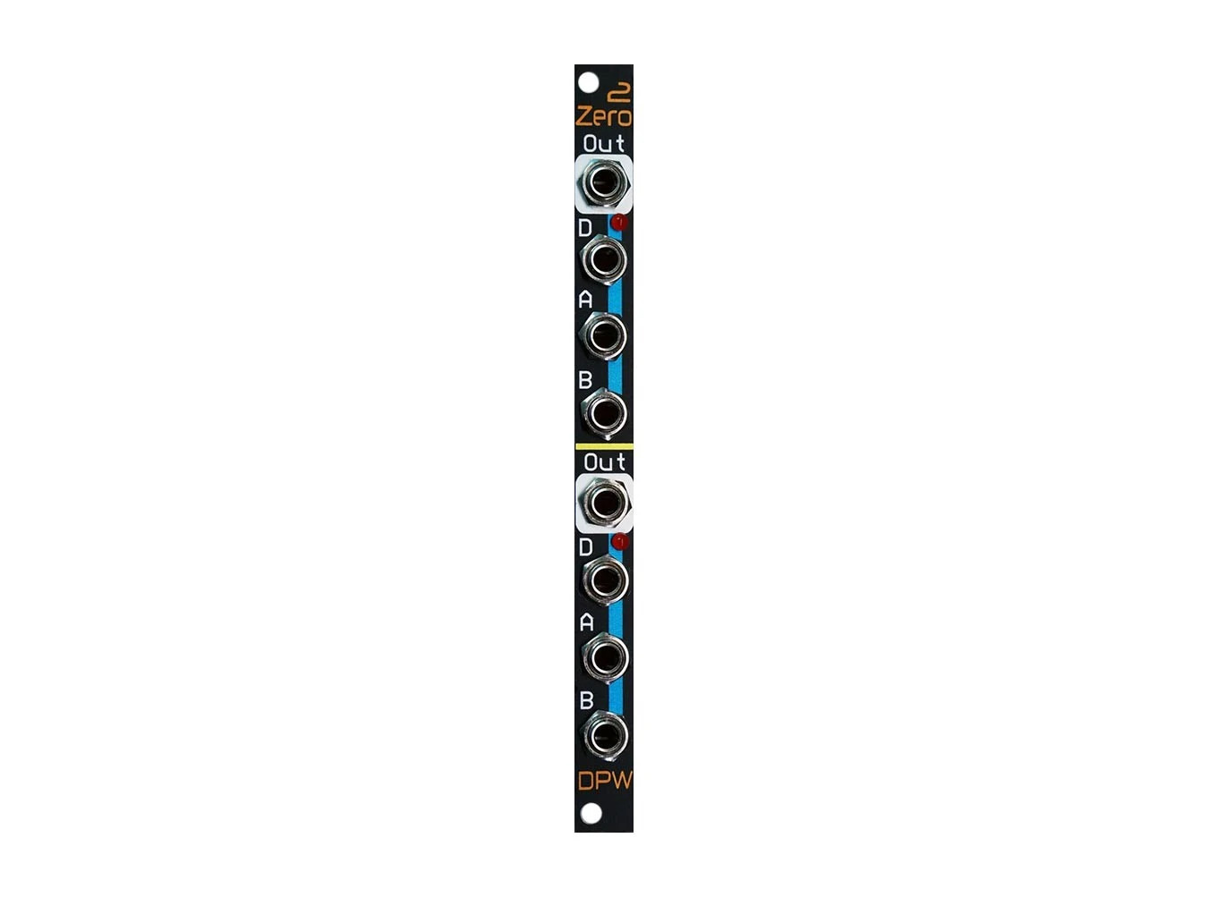 The Zero 2 from DPW Design is a two channel comparator designed for musical expression, as well as logic usage. While it works on its own, it pairs very nicely with the SW-1 Switch module. Each channel has an A and B input for CV and audio signals which sends a high pulse to the Out when A>B. A data input (D) controls the Out after the initial A>B section: once A is greater, D’s input controls the Out. D is designed for working with logic and audio rate giving you access to two stages of manipulation for the Out. Simple in theory, but in practice you can get complex modulation, nasty waveforms, and jittery clocks. Compact and versatile, the Zero 2 is a great addition for any sonic experimenter.